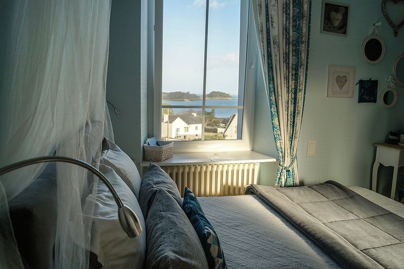 Dans une charmante et typique maison d'hôtes à Paimpol à 400 mètres de la mer et avec une vue imprenable sur celle-ci depuis les chambres et la véranda. L'espace spa, jacuzzi et sauna, est ouvert pour les hôtes de la maison.