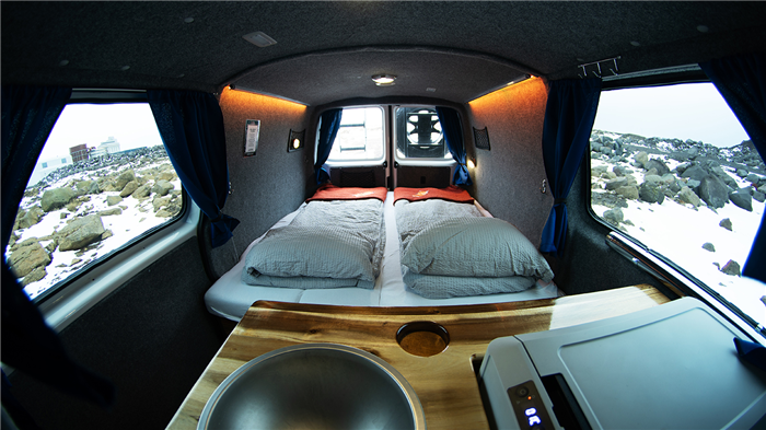 La plupart des modèles ont la possibilité d’ajouter des toilettes de voyage (portatives). Aucun de nos campervans ne dispose de douche. Il n'y a pas besoin. L'Islande possède le plus grand nombre de piscines par habitant au monde. Il y a une surabondance d'eau et des installations pour se baigner. Les douches sont également compliquées dans les camping-cars construits sur mesure et nous voulons que les choses soient simples et faciles. Les installations de camping ne sont pas aussi nombreuses qu'en été, mais il existe encore de nombreux campings équipés de douches. Et toutes les piscines sont ouvertes, disponibles dans chaque ville pour une somme modique. Nous vous recommandons de consulter notre section Camping d'hiver pour une liste à jour des accès aux terrains de camping.