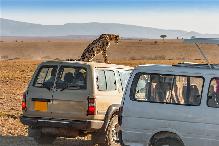 Les déplacements se font en voiture de safari toit ouvrant, ou en 4x4 toit ouvrant, selon l'option choisie. Dans tous les cas, ces 2 véhicules sont totalement adapté au terrain et à l'observation animalière. Ils sont équipés de 4 à 7 places côté fenêtre, et disposent d'une radio, d'une prise pour recharger ses batteries, de documentation sur les parcs visités, et d'une glacière.