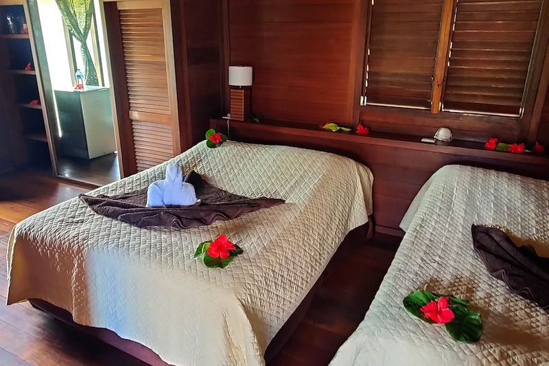 Vous dormirez principalement dans les bungalows privatifs de pensions familiales polynésiennes ou bien en hôtellerie de charme. Le service y est convivial et chaleureux. Dans un esprit convivial et d'entraide, on laisse toujours derrière soit un bungalow ou une chambre dans un bon état de propreté. Avant votre départ, un coup de balai dans le bungalow et le rassemblement du linge de lit dans le gîte seront très appréciés.