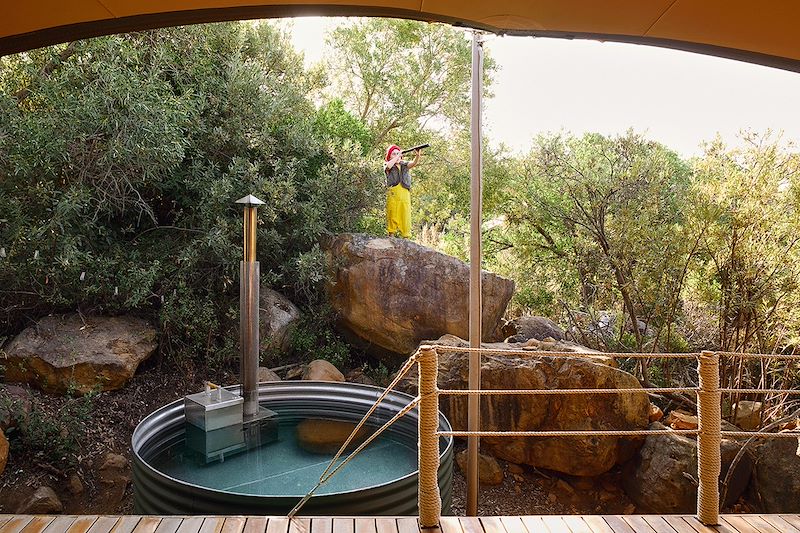 Journée de détente ou d'activités au départ de votre écolodge. Plusieurs possibilités s'offrent à vous : canoë, baignade, VTT de montagne ou sorties à vélo, randonnée sur les sentiers environnants, balades à cheval, ou découverte des charmantes villes de Franschhoek ou Stellenbosch. Pour la détente et une déconnexion totale, faites-vous livrer de savoureux paniers de produits frais directement de la ferme de Boschendal ! Fin de journée à bullern dans votre hammac ou dans votre jacuzzi privé pendant que les enfants joueront les explorateurs.