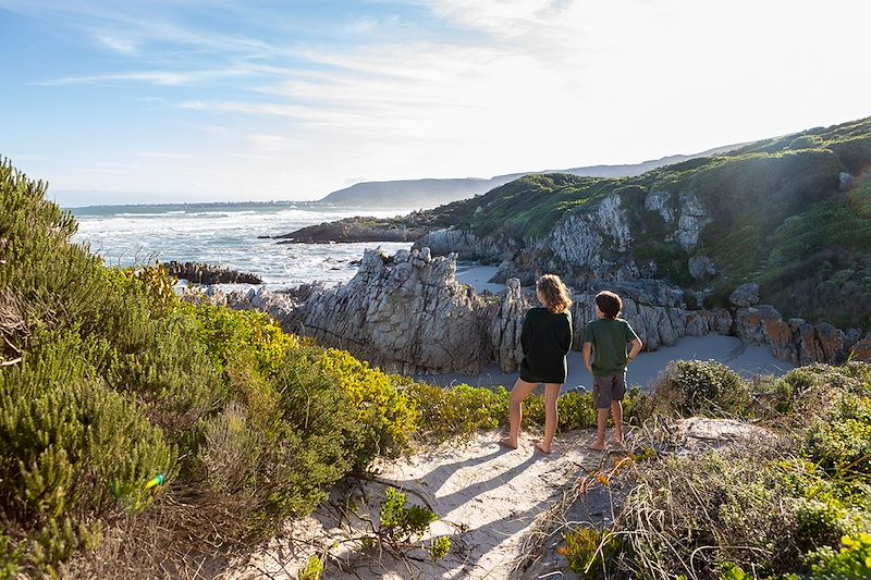 Petit-déjeuner au camp, puis reprise de votre autotour en famille en direction de la fameuse Garden Road ! Crochet possible à Hermanus, petite bourgade tranquille qui déploie 12km de sentier côtier considéré comme le meilleur point d’observation terrestre des baleines en Afrique ! Si vous voyagez entre juin et novembre, ce village de pêcheurs vaut vraiment le détour ! Si les baleines ne sont pas encore arrivées, nous vous conseillons de passer par la R62 à travers des paysages de toute beauté, comme le village pittoresque de Montagu et ses sources thermales. Puis, continuation vers Swellendam pour rejoindre la réserve naturelle De Hoop, qui sera votre point de chute. Cette réserve de 34 000 hectares est un florilège de la biodiversité régionale : les élans du Cap se promènent en liberté dans ses paysages de dunes et de fynbos, le maquis local. Vous y croiserez aussi des bonteboks, des zèbres peu farouches ou encore des autruches, pour le plus grand plaisir des enfants ! Au-delà des dunes, l’océan n’est jamais loin et le ballet des cétacés ponctue souvent la promenade ! N'oubliez pas votre maillot de bain : les réserves naturelles de la Garden Road regorgent de criques et de plages sauvages ! Installation en cottage authentique, avec lits confortables et cuisine tout équipée. La boutique de proximité vend du bois pour les braai et de la viande, mais il est préférable de faire quelques courses avant l'entrée du parc pour profiter au mieux de cette soirée comme un local !
